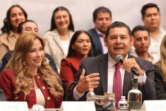 El gobernador de Puebla, Alejandro Armenta, a través de un enlace vía remota participó en la “Mañanera del…