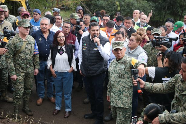 El Gobernador de Puebla, Alejandro Armenta y la coordinadora general de Asuntos Intergubernamentales y Participación Social del Gobierno de México, Leticia Ramírez Amaya, acompañados por el Comandante de la VI…